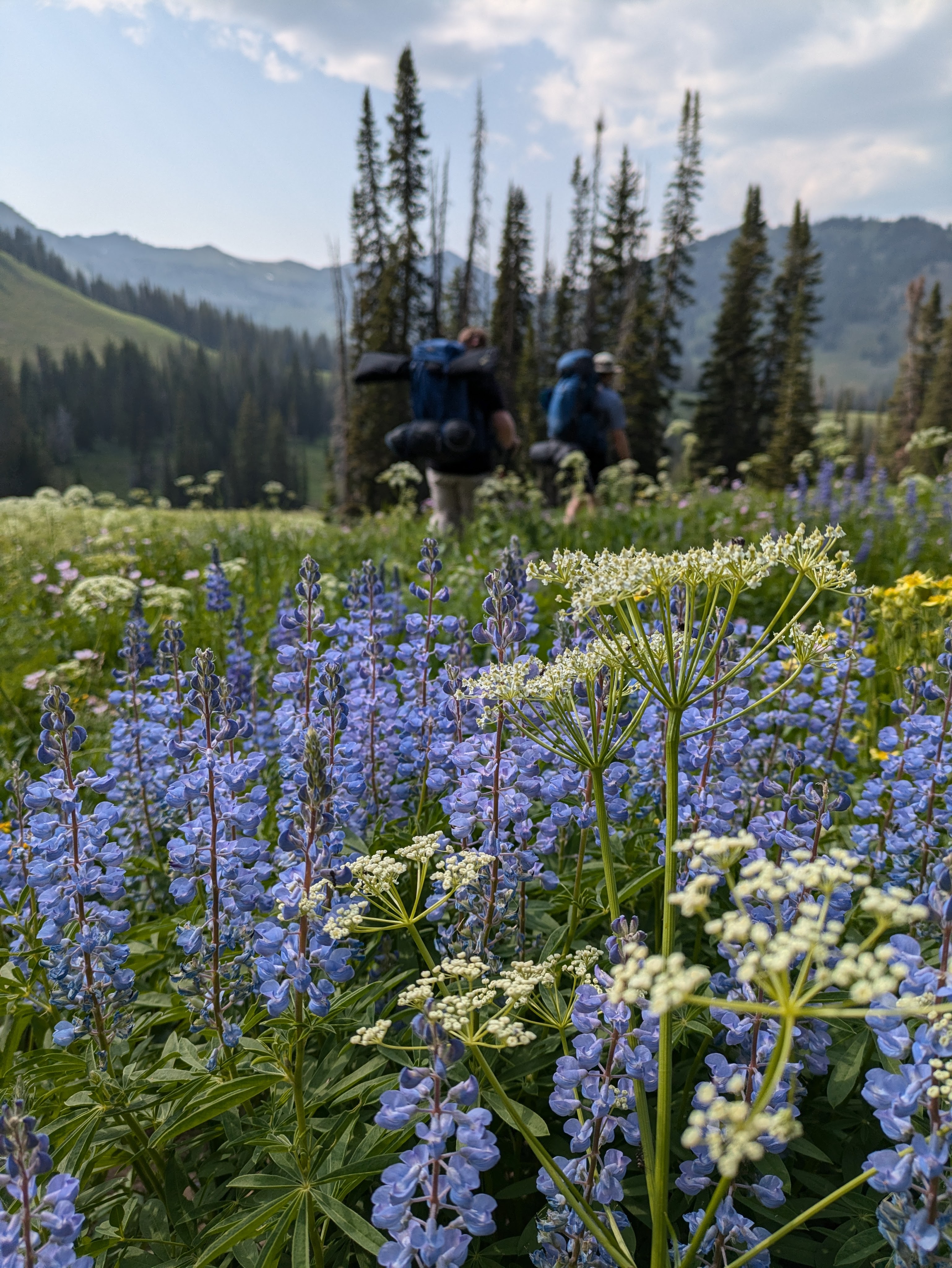Somehow, our trip was planned perfectly. Though we crossed the occasional glacier or patch of snow, wildflowers bloomed all around us. Around each turn, a rainbow of alpine flowers stretched as far as one could see.